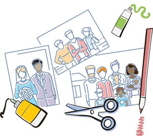 Make a scrapbook that includes photos of older family and friends. Tell stories about each person as you add their name and photo. Perhaps you can phone one person in the book each week.