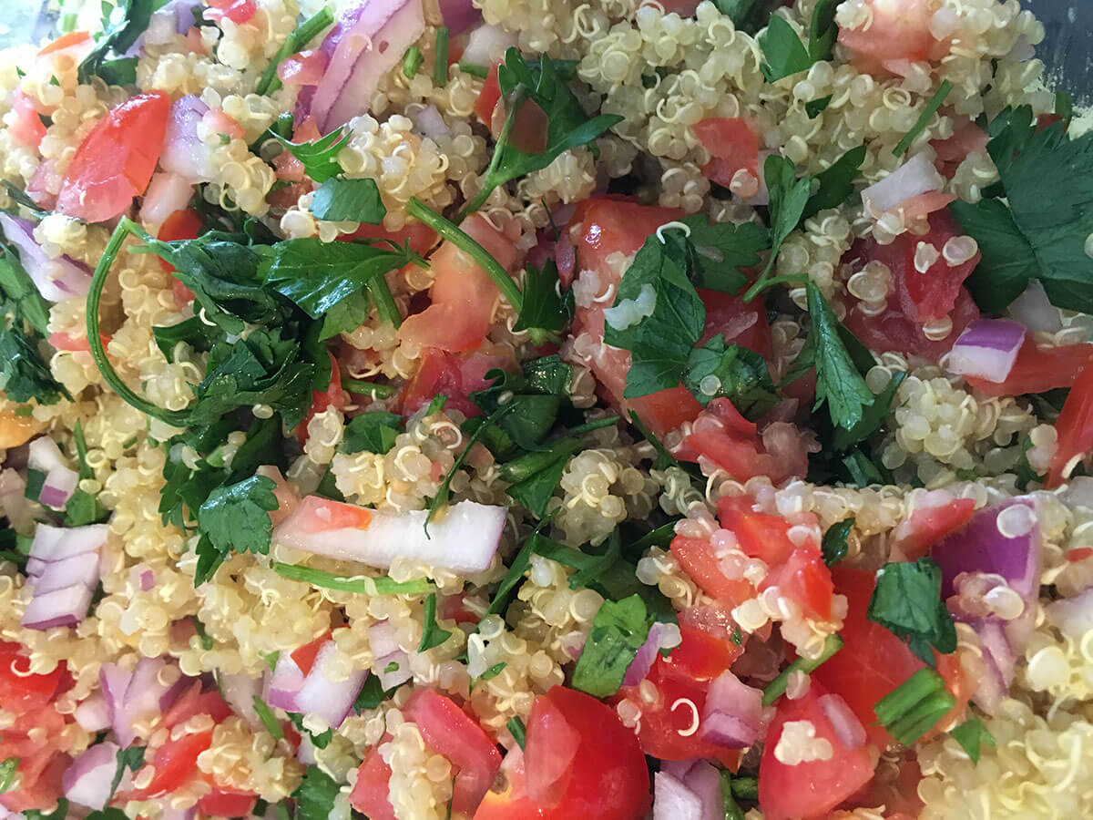 Are you looking for a delicious and healthy one-pot meal that your entire family will enjoy? Try this bright take on the classic Israeli dish tabouleh -- made complete with the addition of quinoa. This dish is a great way to enjoy seasonal ingredients, and sneak a bunch of veggies to your pickiest eaters. It's also gluten and dairy-free, makig it a wonderful side to have on your shabbat table as well.