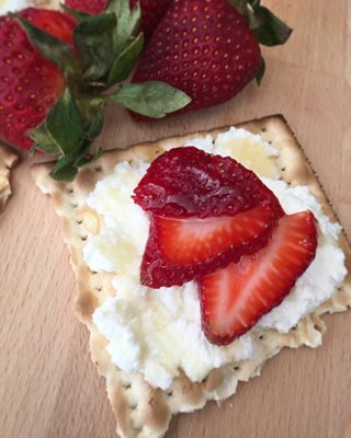 - Smear one tablespoon of ricotta onto each slice of matzah.