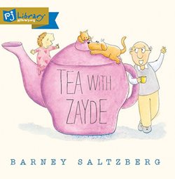 SO BEGINS THE DELIGHTFUL PJ LIBRARY BOOK, TEA WITH ZAYDE, by Barney Saltzberg. With catchy rhymes and whimsical illustrations, Tea with Zayde tells the tale of a very special tea party ritual between a grandfather and his granddaughter.Their relationship is like any other tea party between a grandparent and young child, full of giggles and fun, but as they say their goodbyes, we learn that the tea party takes place across computer screens. Our little narrator and her grandfather don’t get to share actual hugs each day, but the love and bond between them is unmistakably tangible.