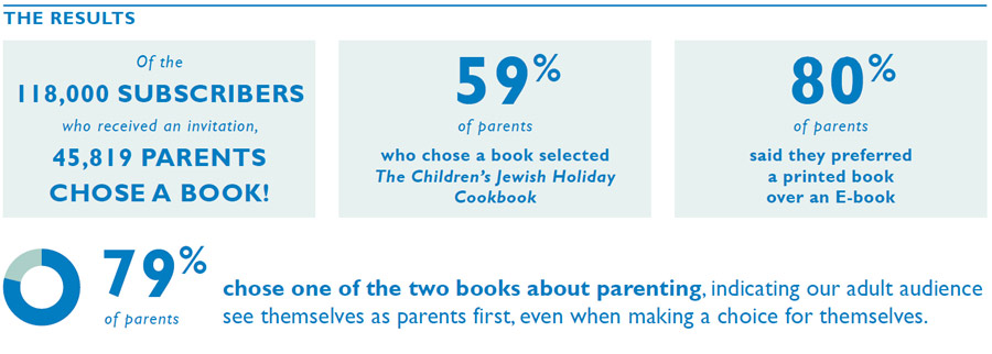 - Gauge parents’ interest in receiving Jewish books written for adults