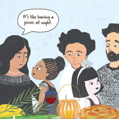 Five days after Yom Kippur, the moon grows full. It lights up a special celebration called Sukkot (soo-COAT), a harvest festival that lasts for an entire week.